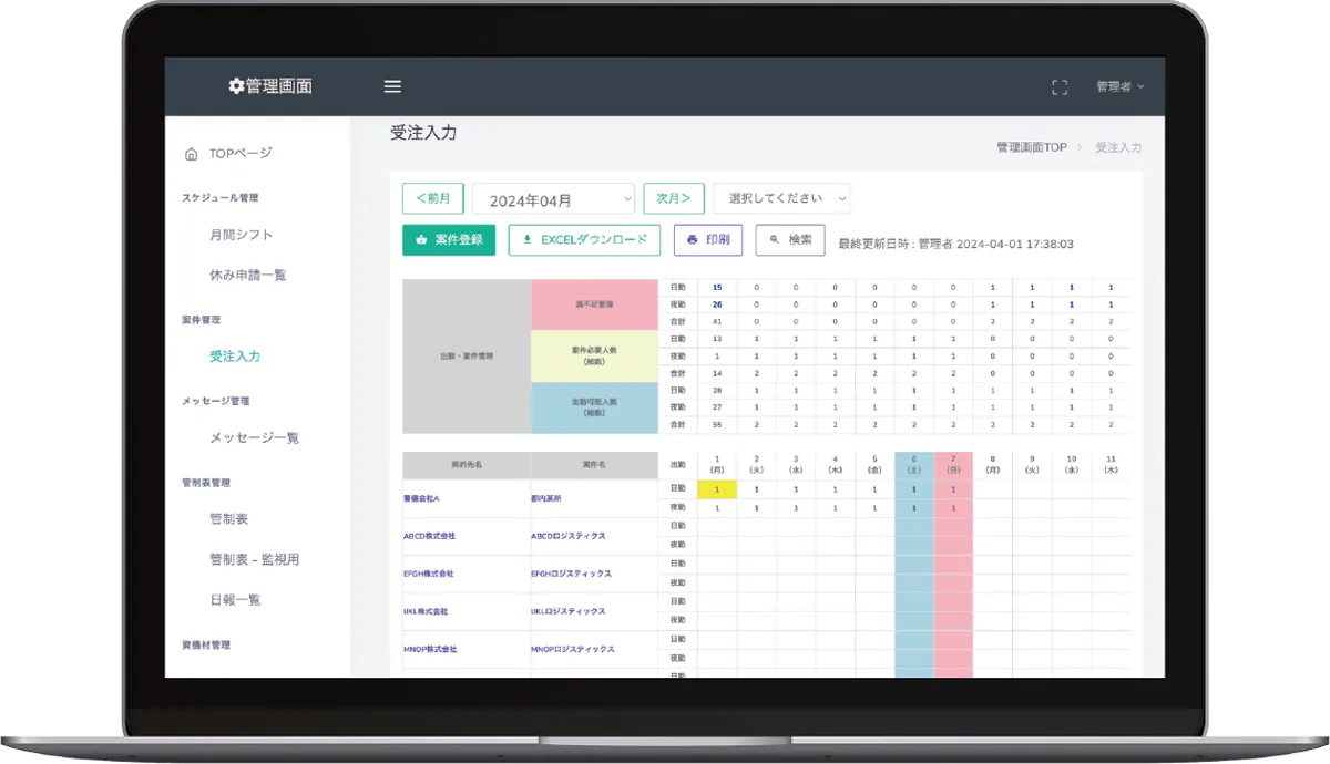 「警備らくらく管理」は、警備業務の現場と本部をつなぎ、業務全体を効率化するクラウド型の管理システムです。